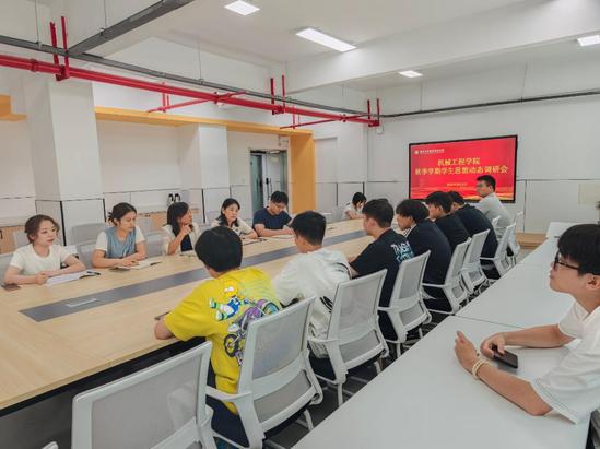 为了能够把握秋季学期学生思想动态,精准回应学生成长需求,筑牢育人工作根基,9月4日下午,万象城娱乐awc线路在“一站式”学生社区党建活动室召开秋季学期学生思想动态调研会,学院党委书记刘英慧,党委副书记、副院长赵颖,辅导员黄雅杰、陆婷婷、何宇欣、吴婷婷、刘璠及来自各年级各专业的28名学生代表参加了会议,会议由赵颖主持。
