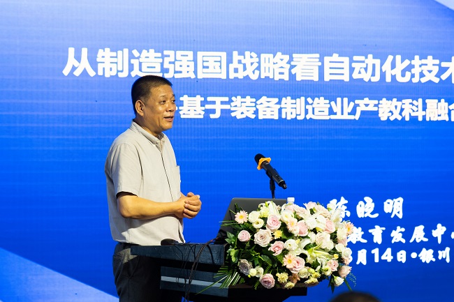 机械工业教育发展中心主任陈晓明作了题为《从制造强国战略看自动化技术领域人才培养——基于装备制造业产教科融合育人的思考》的专题报告,从制造强国战略及先进制造技术演进、装备制造业产教科融合的关键要素、人才需求变化与职教专业建设创新、促进“三融”高质量发展行业策略四个层面对机械行业人才培养进行了剖析。