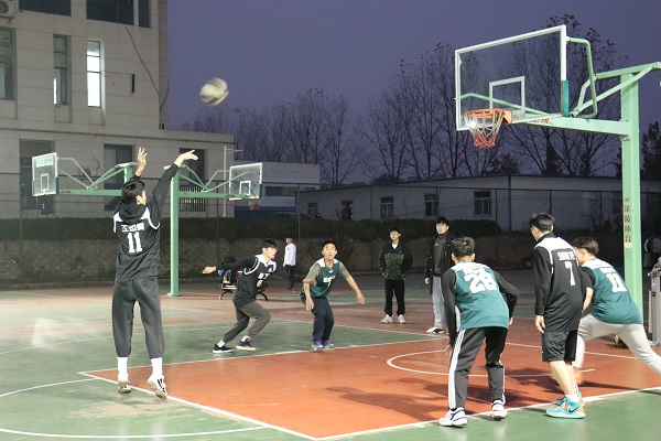 比赛开始前,篮球场围满了前来观看的同学们,参加比赛的队员们也热情高涨,跃跃欲试。随着哨声吹响,比赛正式开始,双方展开了激烈的角逐,一开始比分始终僵持不下,大约5分钟以后,机自2021队的队员终于率先打破僵局,篮球应声入网。暂时比分落后的机电2016队队员也毫不示弱,奋起追击,很快便轻松追平比分。在双方班级同学的助威呐喊声中,比赛紧张而激烈地进行着,奔跑、传球、跳投……双方都永不停歇的寻找机会。