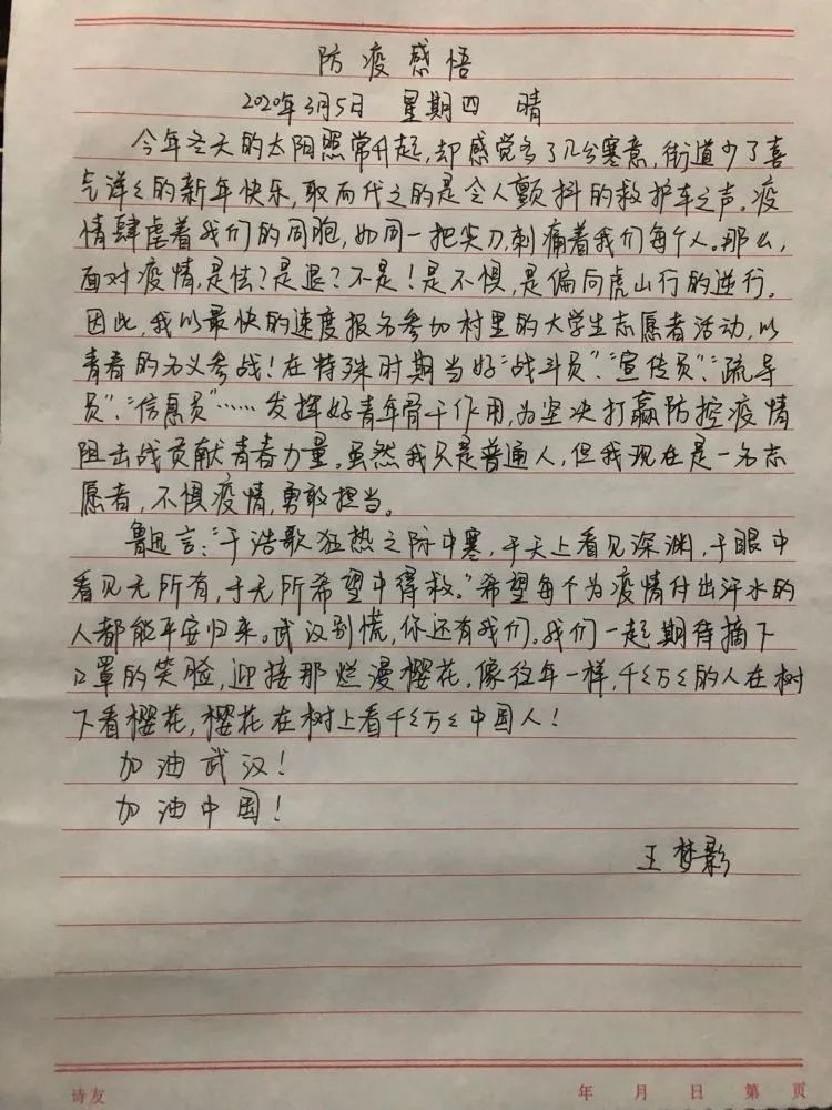 青春有热血,抗“疫”显担当,通过此次团课的学习,希望每位同学在生活细微处尽自己所能帮助他人、践行志愿者精神。不忘初心,不负韶华,为坚决打赢疫情防控阻击战贡献青春之力!