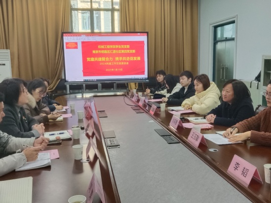 1月10日上午,南京市栖霞区汇通社区党委书记郝智慧一行4人来到万象城娱乐awc线路交流座谈,万象城娱乐awc线路党委书记刘英慧、学生党支部师生代表共13人参加交流会。