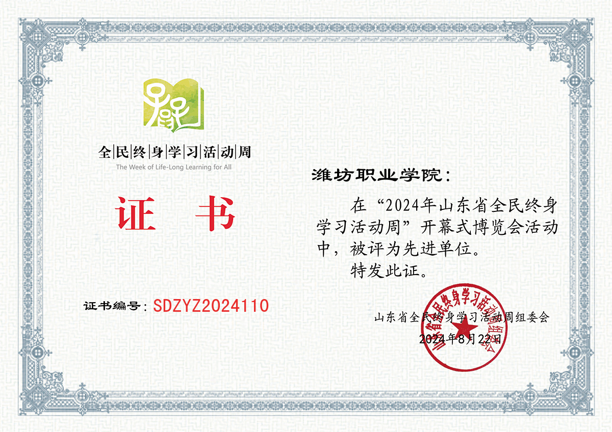 学院荣获“2024年山东省全民终身学习活动周”先进单位