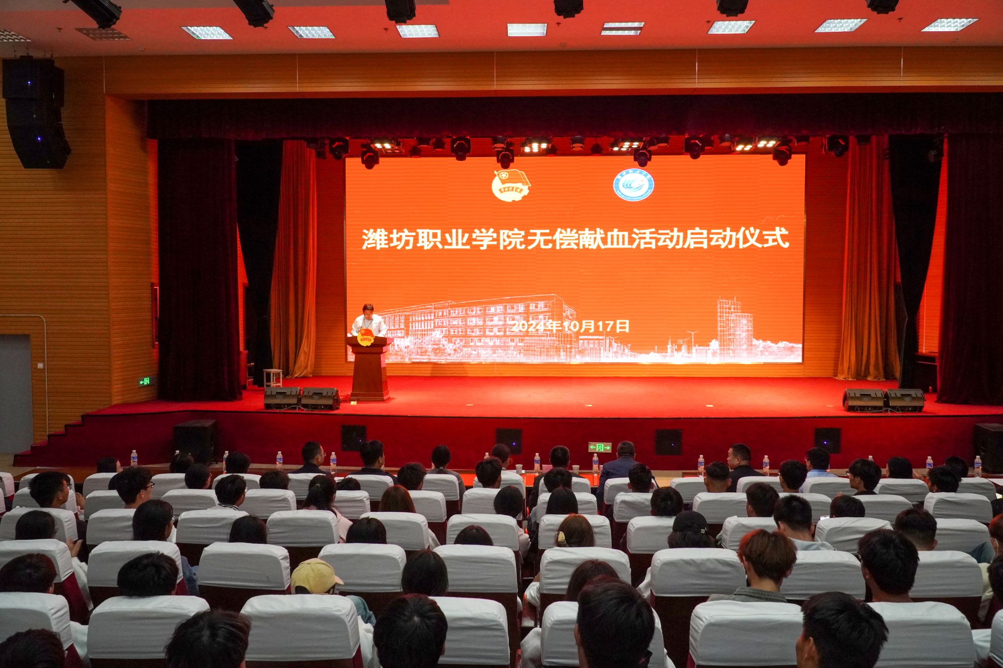 为响应国家无偿献血政策号召,鼓励更多师生加入无偿献血公益事业,10月17日下午,学院在滨海校区图书馆报告厅举行无偿献血活动启动仪式。学院党委委员、副院长任培华,潍坊市中心血站党委书记、站长王胜,潍坊市中心血站党委委员、副站长王夕钢,各二级学院团总支负责同志,各班班长、团支书以及大学生青年志愿者协会400余人参加活动。任培华致辞。他向大家介绍了学院无偿献血工作开展情况,并向各二级学院提出三点要求:一是志愿服务融入思政教育,...更多 -