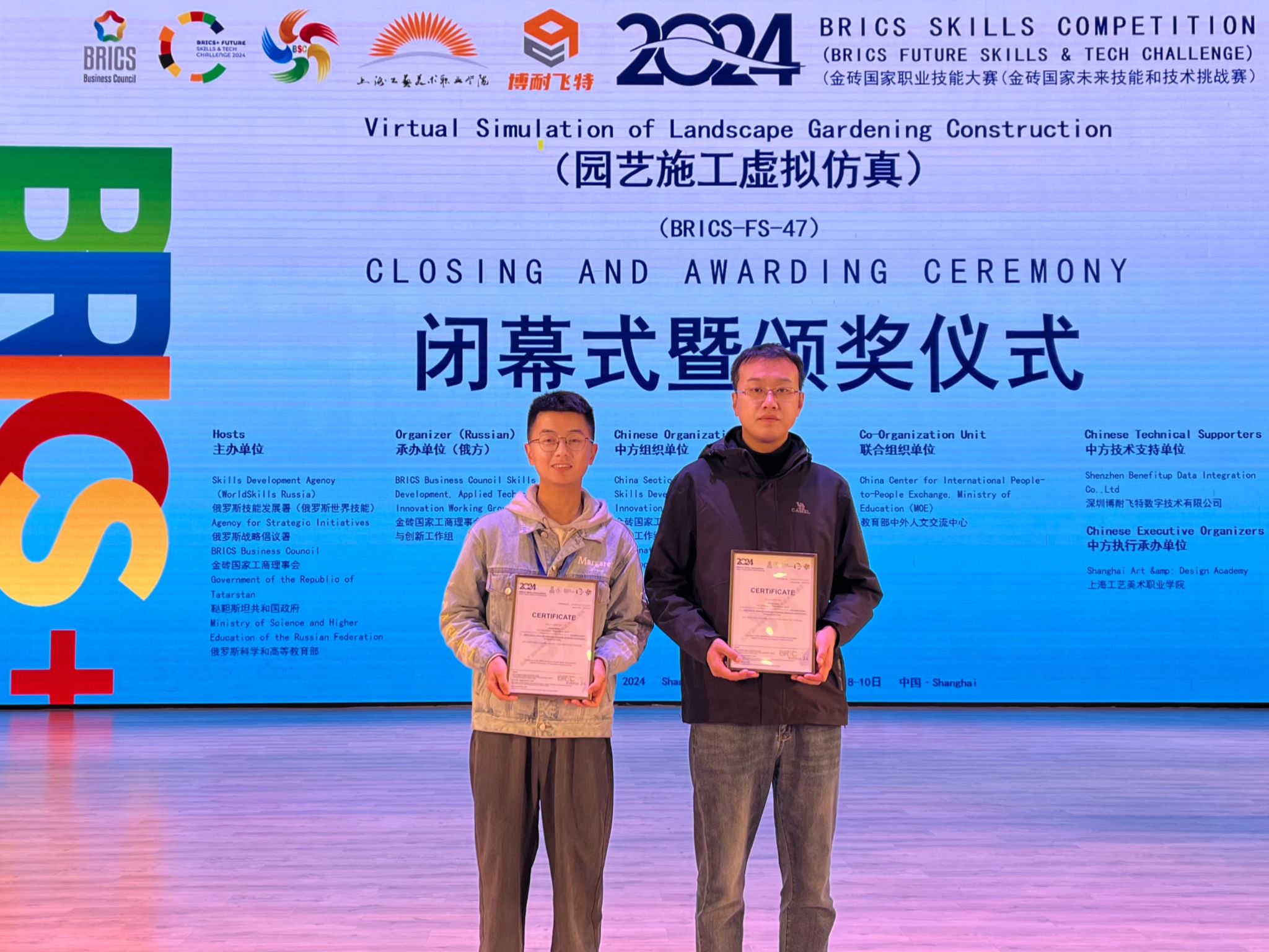 2024年11月8日至10日,2024金砖国家职业技能大赛园艺施工虚拟仿真赛项中国分赛区国际总决赛在上海工艺美术职业学院嘉定校区成功举办。本次赛事经过全国区域选拔,共有来自6个国家的58支队伍参赛,参赛选手涉及各高等院校、高职院校及企业人员,选手年龄均35岁以下。经过激烈角逐,由农林科技学院黄伟男、宋帅振两位老师组成的bv伟德国际1946代表队,在赛场上展现了专业的技能水平和良好的综合素质,荣获一等奖。金砖国家技能发展与技术创新大赛是2017年金砖国家最高领导人会晤筹备委员会认可、...更多 -
