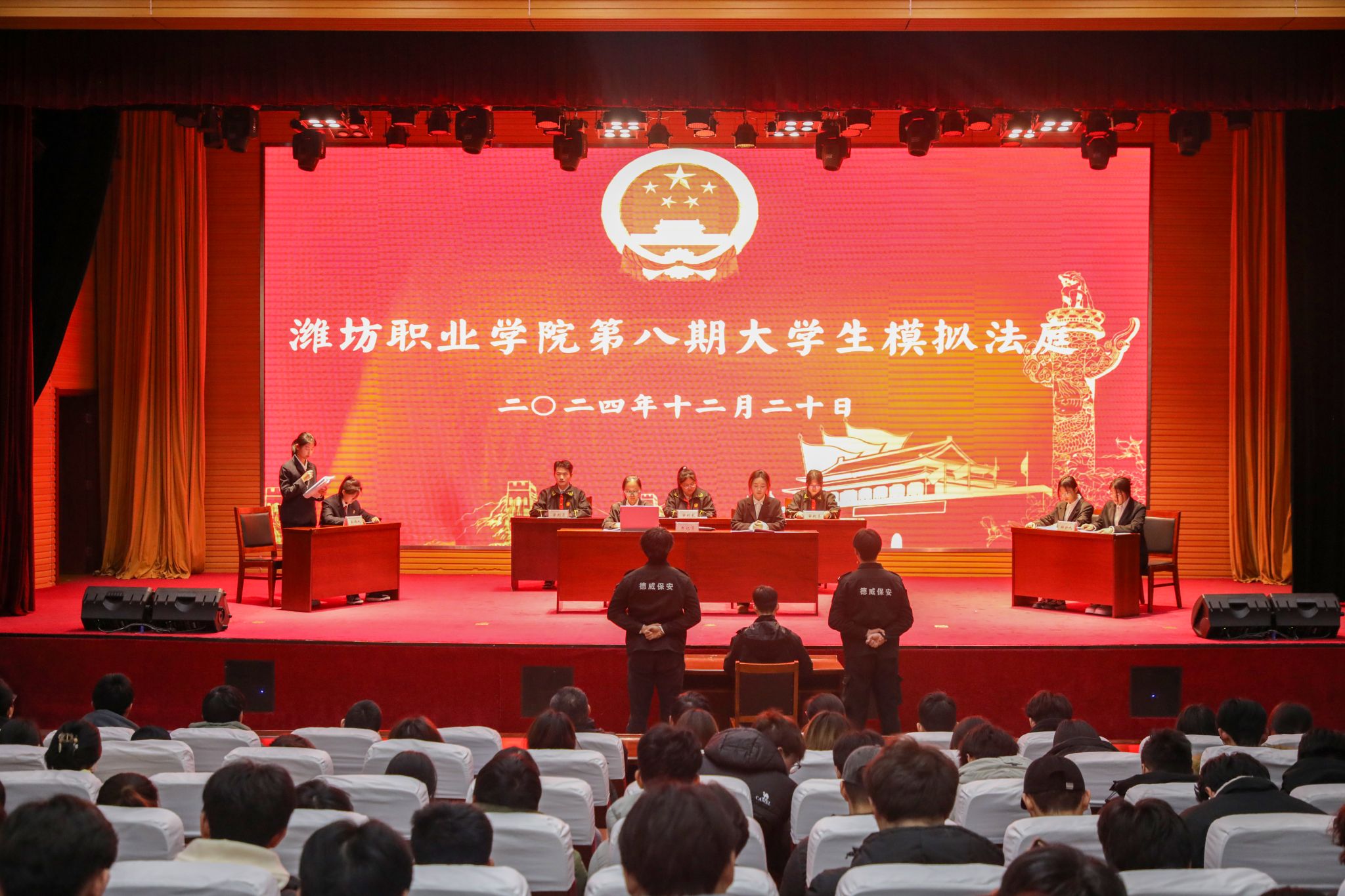 为认真学习贯彻党的二十届三中全会精神,深入贯彻落实习近平法治思想,12月20日晚,学院在滨海校区图书馆报告厅举办第八期大学生模拟法庭。奎文校区创新创业中心报告厅通过视频连线设分会场。马克思主义学院负责同志,宣传部、团委学生工作处、马克思主义学院、二级学院师生代表及青年法学社同学代表共500余人观看模拟法庭。本期模拟法庭聚焦的案件是2013年复旦大学投毒案,展示的是刑事诉讼一审审判程序。在庭审过程中,开庭准备、...更多 -