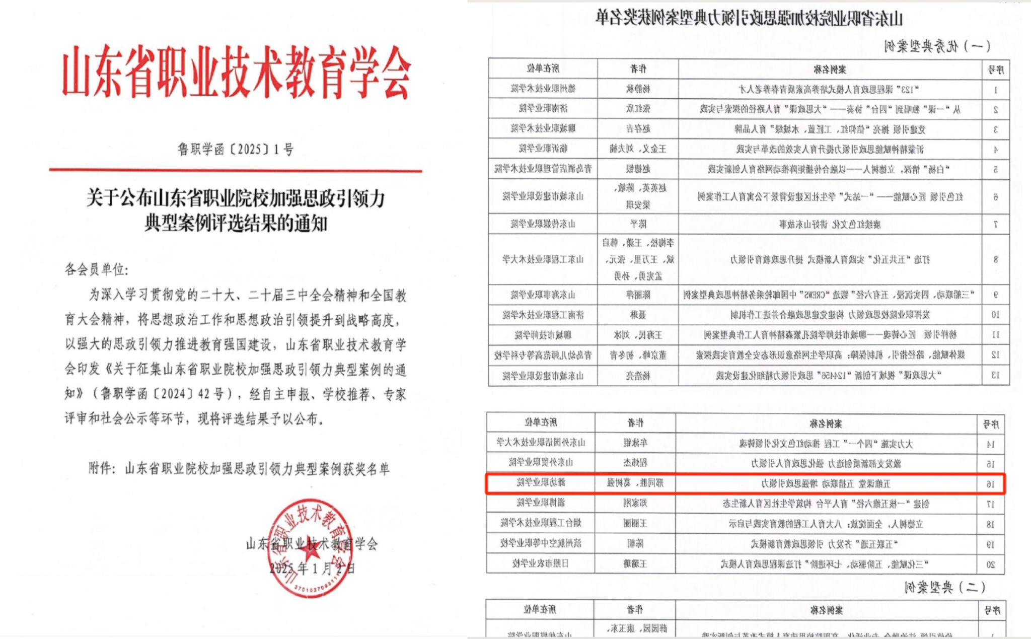 学院1项案例入选山东省职业院校加强思政引领力优秀典型案例