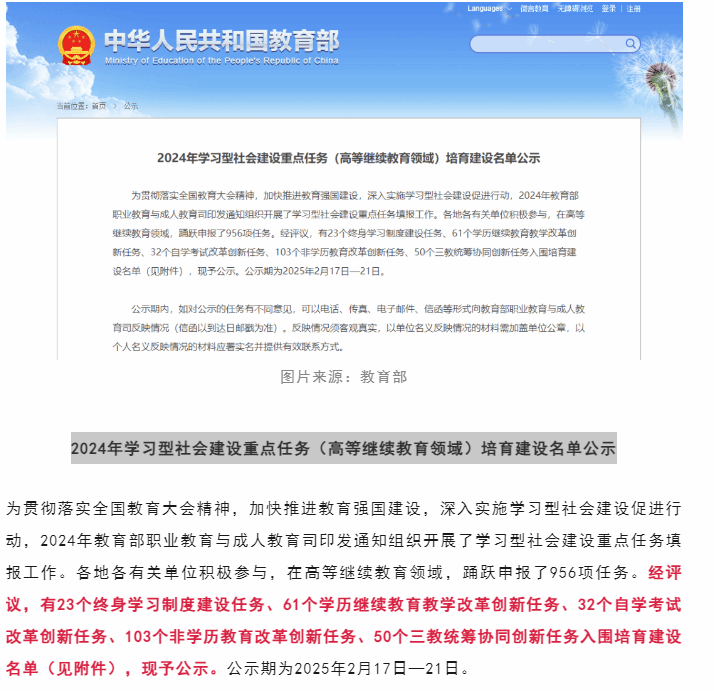 bv伟德成功立项教育部2024年学习型社会建设重点任务(高等继续教育领域)培育建设项目