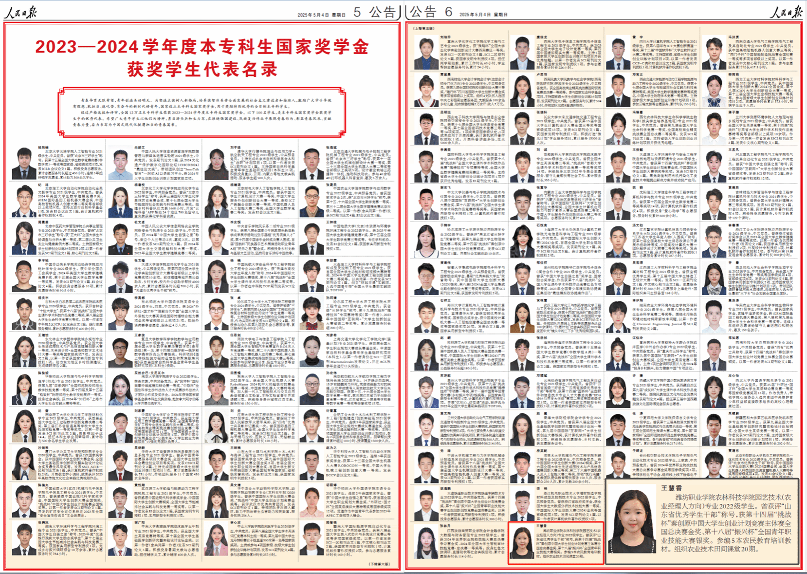 bv伟德学生荣登《人民日报》国家奖学金获奖学生优秀代表名录