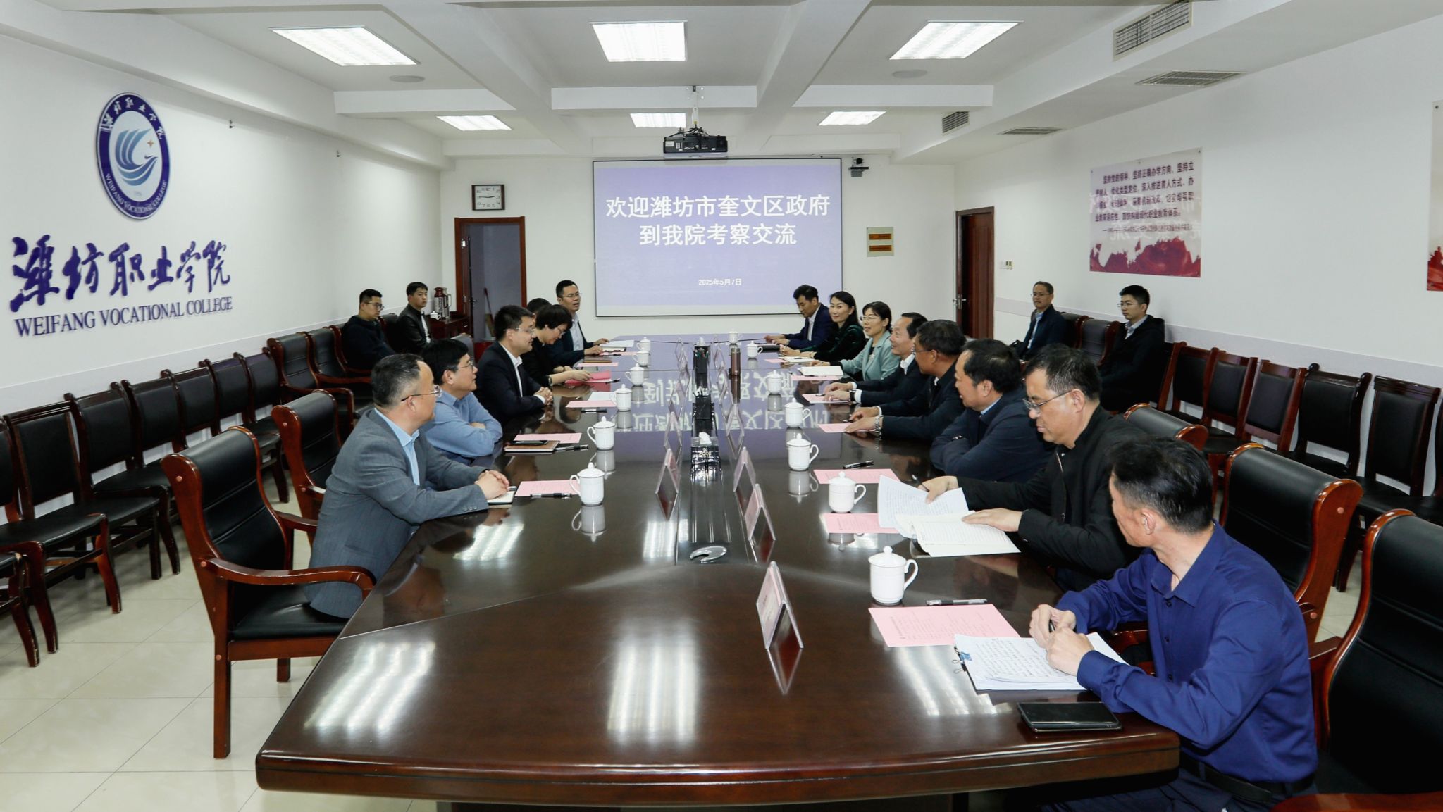 5月7日下午,为深化政校企合作,推动学生就业创业,潍坊市奎文区委副书记、区长董盛龙一行到bv伟德考察交流。学院党委书记王浩,院长韩瑞东接待客人,副院长陈美霞、付一明及有关部门负责同志参加座谈交流。座谈会上,王浩对董盛龙一行表示欢迎,并简要介绍了学院的办学历史和发展概况。他重点阐述了学院近年来在办学特色、专业建设提升、校企合作深化等方面取得的主要成绩。学院相关职能部门负责人分别就社会服务创新、产教融合深化、...更多 -