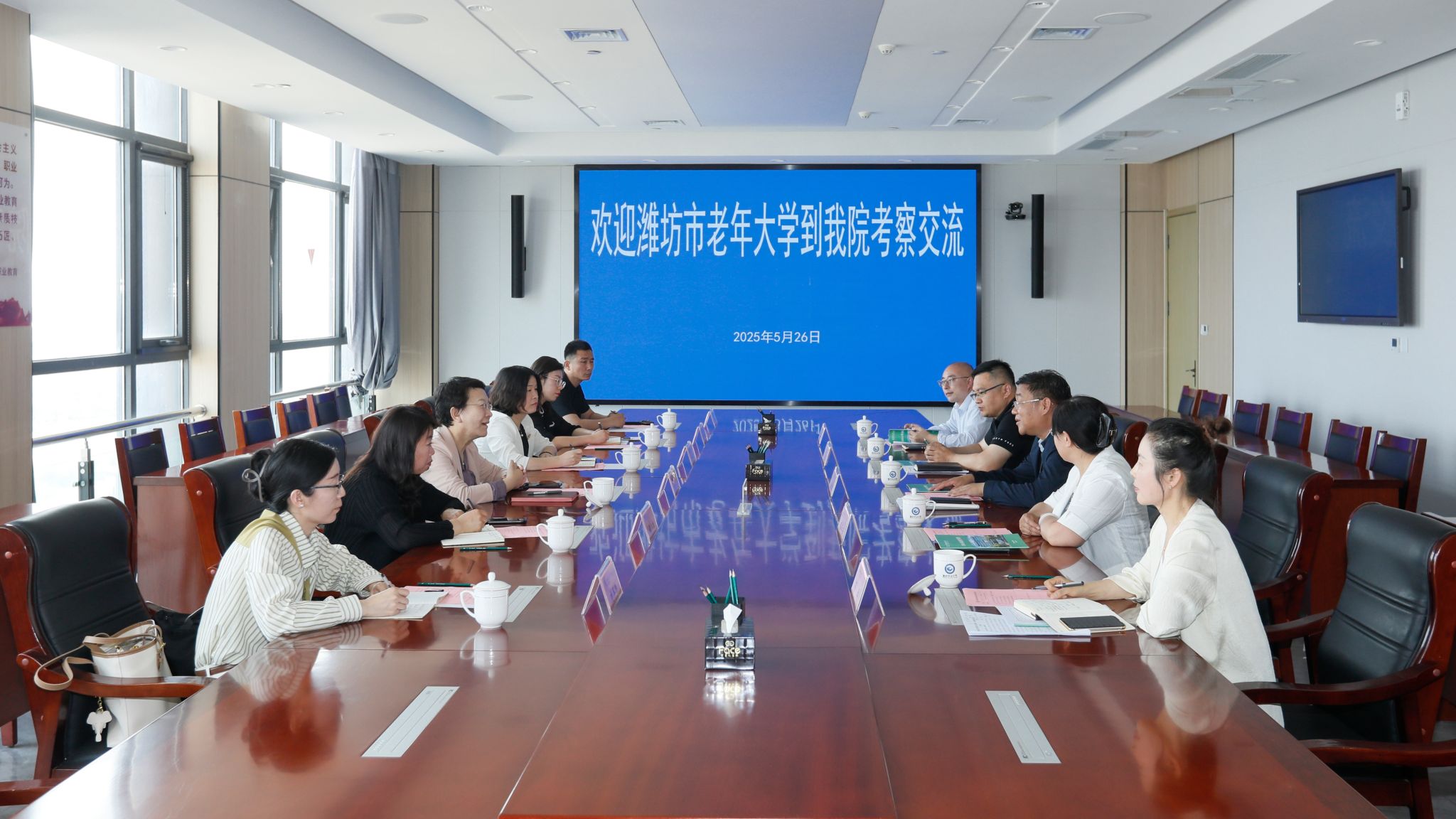 5月26日上午,潍坊市老年大学校长裴红一行6人到bv伟德考察交流。学院党委书记王浩会见客人。学院院长韩瑞东,党委委员高凌云,组织人事处、教师工作部、教务处主要负责同志参加座谈。座谈会上,韩瑞东对裴红一行表示欢迎,陪同客人观看了学院宣传片,并介绍了学院基本情况、发展历程、近年来取得的主要成绩以及发展前景。学院相关部门负责同志交流了学院在师资队伍建设、专业建设及课程设计优化等方面的情况。裴红对bv伟德建设发展取得的成绩表示赞赏,...更多 -