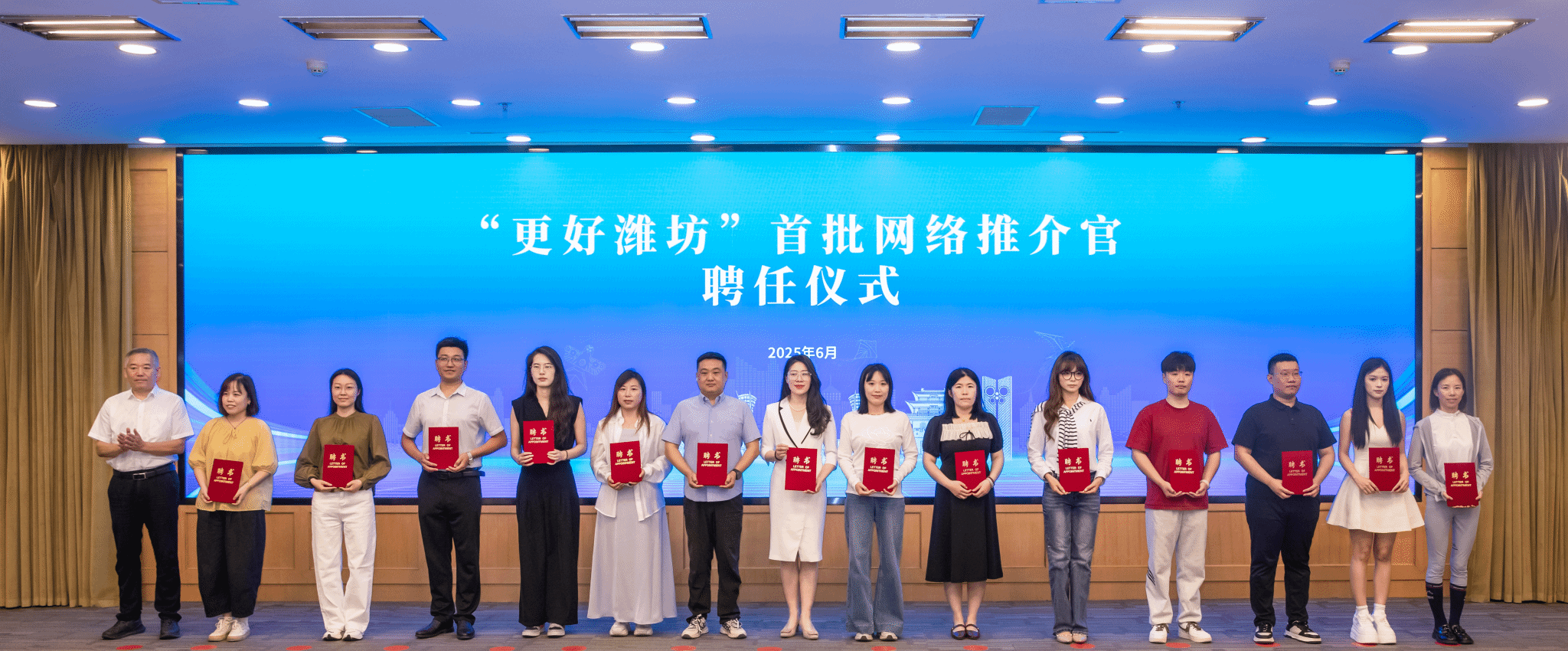 6月3日,中共潍坊市委宣传部召开了“‘走好网上群众路线 建设民间舆论场’高校自媒体暨社会网络大V分享交流会”和“全市新闻发言人素质提升和风采展示暨‘更好潍坊’首批行业推介官聘任仪式”两场会议。学院教师鞠峰、张晓晗获聘“更好潍坊”首批网络推介官。会上,市委宣传部分管日常工作的副部长孙磊作动员讲话,并对后续相关工作作出部署、提出要求。潍坊本地和省内网络大V、市直有关部门行业推介官代表围绕亮点成效进行了经验分享和风采展示,...更多 -