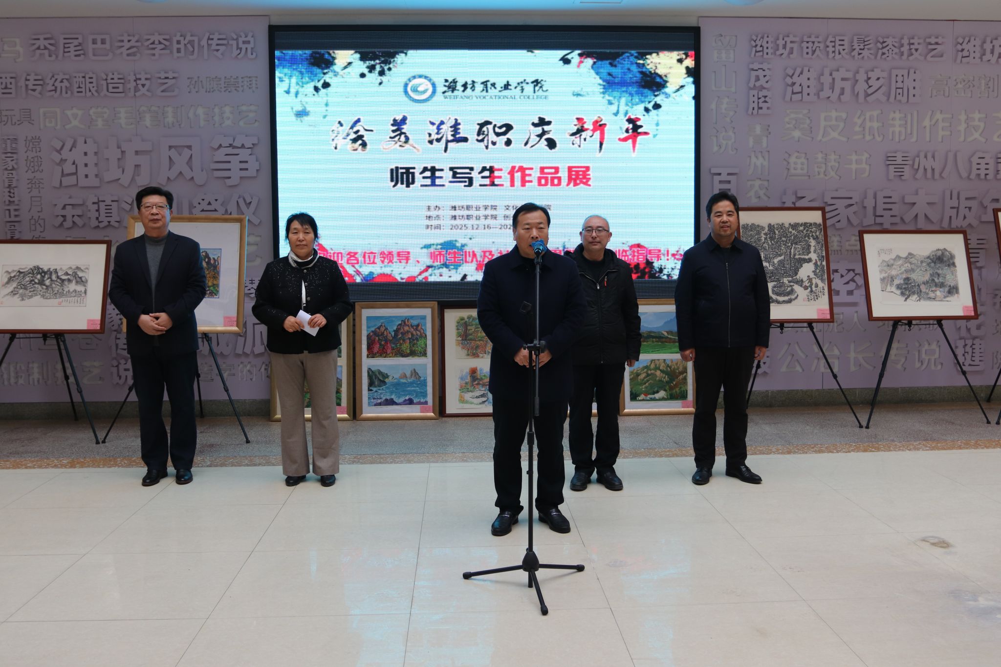 12月16日下午,文化创意学院“绘美潍职庆新年”师生写生作品展在奎文校区开展。学院党委副书记贺志强,党委委员、宣传部部长鞠桂芹,教务处处长、文化创意学院党政负责同志及200余名师生代表参加活动。作品展汇集了文化创意学院艺术设计专业师生在日照九仙山、淄博峨庄、青州杨集等地区写生课程的优秀作品300余幅,涵盖速写、水粉、油画等多种艺术形式。作品内容丰富、风格多样,既有细腻入微的工笔描绘,也有大气磅礴的山水写意。每一件作品都凝聚了师生的辛勤努力和独特创意,...更多 -