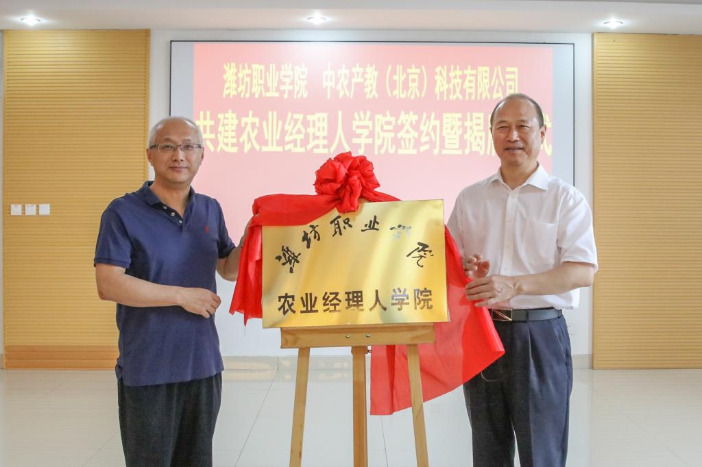 6月10日下午,学院与中农产教(北京)科技有限公司共建农业经理人学院签约暨揭牌仪式在滨海校区清泽楼会议室举行。学院党委书记马跃启、副院长贺志强,农业农村部人力资源开发中心副主任吴金玉,农业农村部人力资源开发中心职业技能鉴定处处长何兵存,中农产教(北京)科技有限公司总经理、中信农业科技股份公司总经理助理、中国农业经理人发展联盟副会长、秘书长纪绍勤,中农产教(北京)科技有限公司潍坊运营中心负责人、中国...更多 -