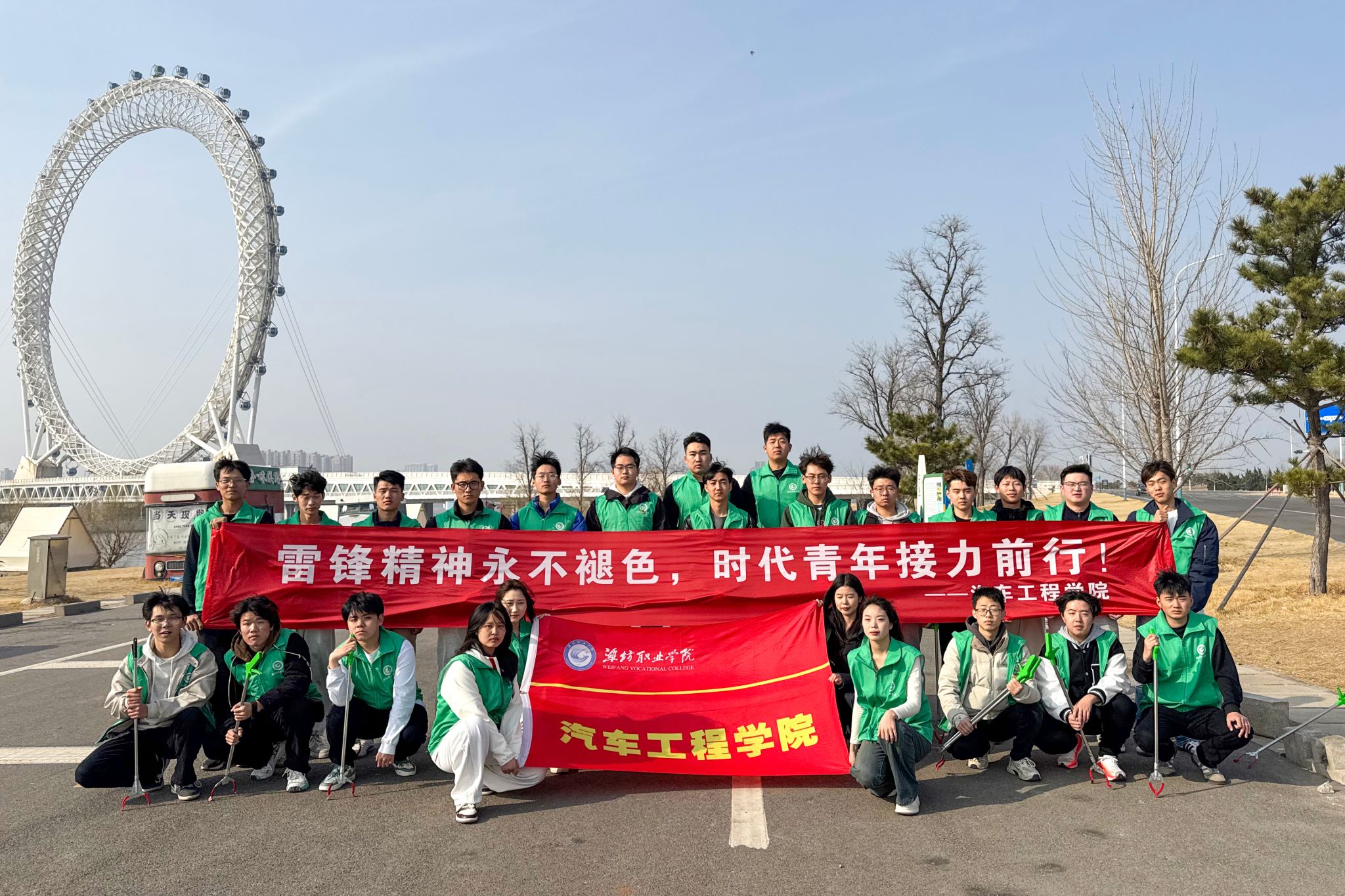为深入学习贯彻党的二十大精神,大力弘扬雷锋精神,3月11日,汽车工程学院学生会组织开展了“青春闪耀渤海之眼,雷锋精神薪火相传”主题志愿服务活动。春寒料峭,却抵挡不住志愿服务者们的热情。下午两点,20余名学生会成员组成志愿者分队,来到渤海之眼摩天轮景区,开始了清洁工作。他们手持垃圾钳、垃圾桶等工具,仔细清理景区草坪区域的垃圾。志愿者们分工明确,配合默契,有的负责捡拾垃圾,有的负责分类回收。“虽然今天天气有点冷,...更多 -