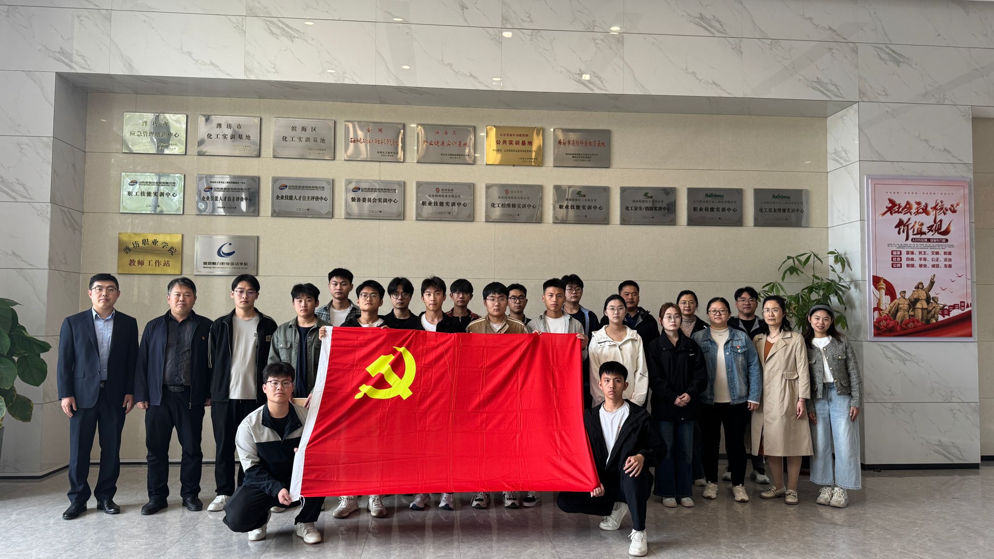 为深化产教融合,推动校企协同育人,4月24日下午,化学工程学院学生党支部组织2023级“新和成现场工程师班”全体学生前往山东滨安职业培训学校有限公司开展校企共建活动。活动伊始,山东滨安职业培训学校有限公司相关负责人对师生一行的到来表示欢迎,并详细介绍了企业在化工技能培训、安全生产教育等方面的特色优势。随后,在企业技术人员的专业讲解下,师生们实地参观了滨安职业培训学校实训基地、模拟生产车间、安全培训中心及党建活动展厅。...更多 -