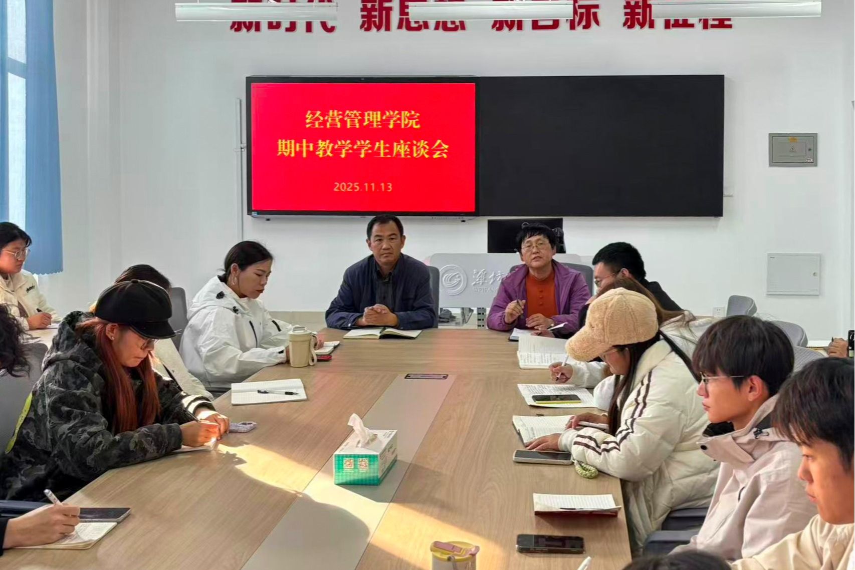 为全面了解本学期开学以来的教学运行状况,及时发现问题、改进不足,持续提升教育教学质量,11月13日下午,经营管理学院在智泽2号楼308会议室组织召开了本学期期中学生座谈会。学院党总支负责同志、分管教学负责同志、教学管理办公室工作人员、辅导员代表以及各班级学生代表共同参会。会议现场气氛坦诚融洽,交流热烈深入。会议由教学分管负责同志主持,她在开场中明确了召开此次座谈会的目的与意义。座谈会上,各班学生代表在前期广泛收集意见的基础上,...更多