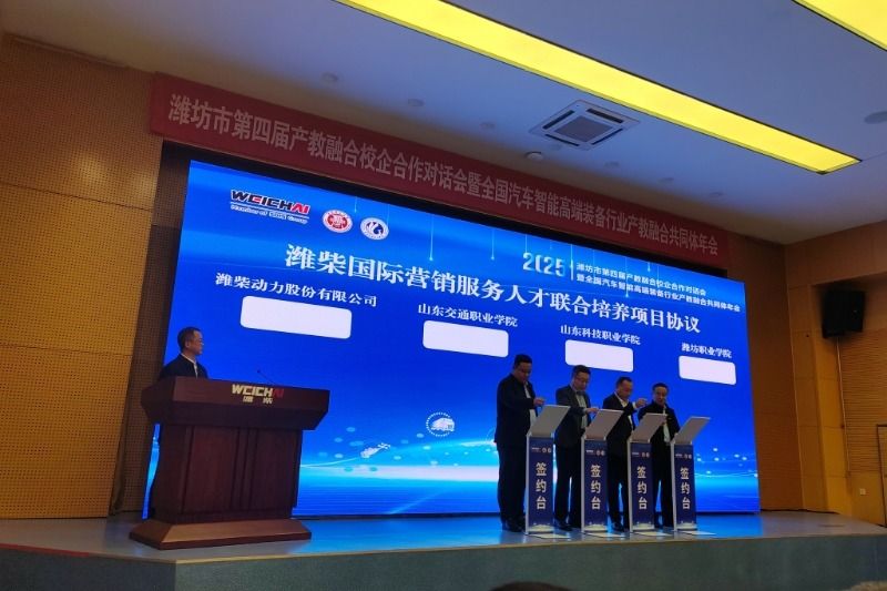 11月21日,潍坊市第四届产教融合校企合作对话会暨全国汽车智能高端装备行业产教融合共同体年会于潍柴大学召开。全国50余家汽车智能高端装备行业相关的企业、协会、院校单位参会。汽车工程学院主要负责人、科技处相关教师等一行4人应邀参加。会上,汽车工程学院主要负责人与潍柴动力股份有限公司、山东交通职业学院、山东科技职业学院代表共同签署了国际营销服务人才联合培养项目协议。根据协议,将采用“学校理论学习+潍柴大学理实一体化学习+...更多 -