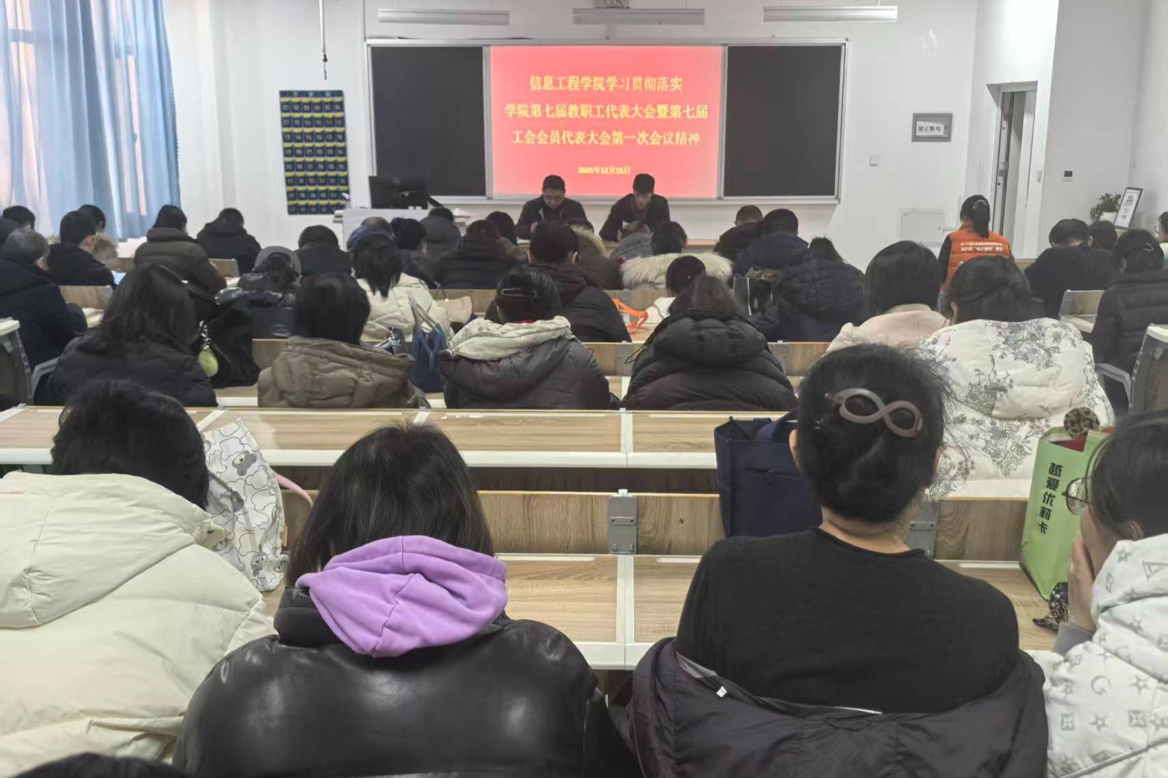 12月15日下午,信息工程学院在滨海校区智泽1号楼A216召开学习贯彻落实学院第七届教职工代表大会、第七届工会会员代表大会第一次会议精神专题会议。全体教师参加。会上,信息工程学院主要负责人传达了学院“两代会”精神,并带领与会教师认真学习了学院党委书记王浩在第七届“两代会”闭幕式上的讲话及学院院长韩瑞东所作的《学院工作报告》精神,重点解读了“九个坚持”重点任务和“建高升本”发展目标,并结合学院实际,分析了当前工作中存在的短板与不足,...更多 -