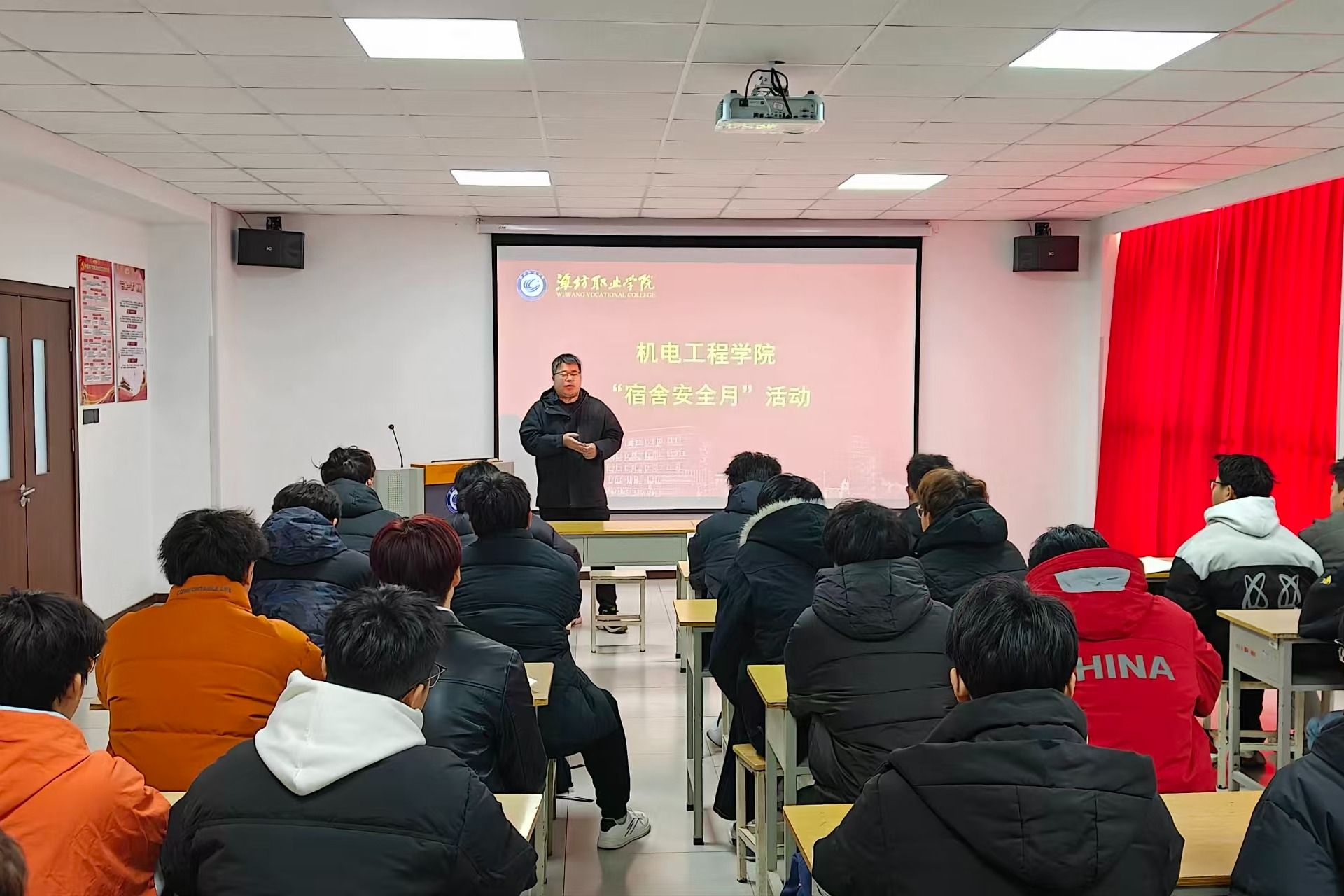 为了强化宿舍安全管理,提升学生安全防范意识与自我保护能力,营造安全文明的宿舍环境,12月15日,机电工程学院以“安全驻宿舍,平安伴我行”为主题,启动“宿舍安全月”系列活动。活动启动仪式上,负责宿舍管理的老师面向学生们开展安全专题宣讲。他结合高校宿舍安全典型案例,用真实数据与图片警示违规用电、存放易燃易爆物品等行为的潜在危害,同时立足学院宿舍实际,围绕电路使用规范、专业工具存放要求等重点事项,细致讲解安全用电知识、...更多 -