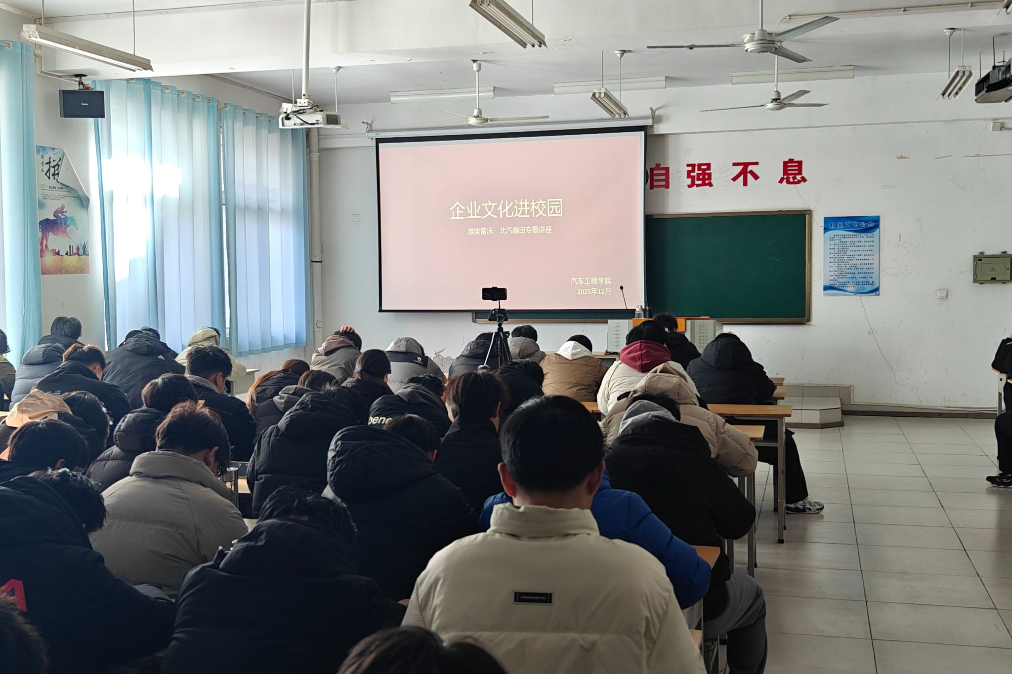 为深化校企合作,推动企业文化与校园文化融合,助力学生职业规划与成长,12月25日,北汽福田山东多功能汽车厂、潍柴雷沃智慧农业科技股份有限公司到汽车工程学院开展“企业文化进校园”专题活动。汽车工程学院相关负责人、产学合作办公室相关教师、汽车工程学院2024级全体学生参加活动。活动在企业文化宣讲中拉开帷幕。北汽福田人力资源负责人详细介绍了公司的发展历程、技术创新理念及“以人为本、追求卓越”的核心价值观;潍柴雷沃代表则聚焦智能农业装备领域,...更多 -