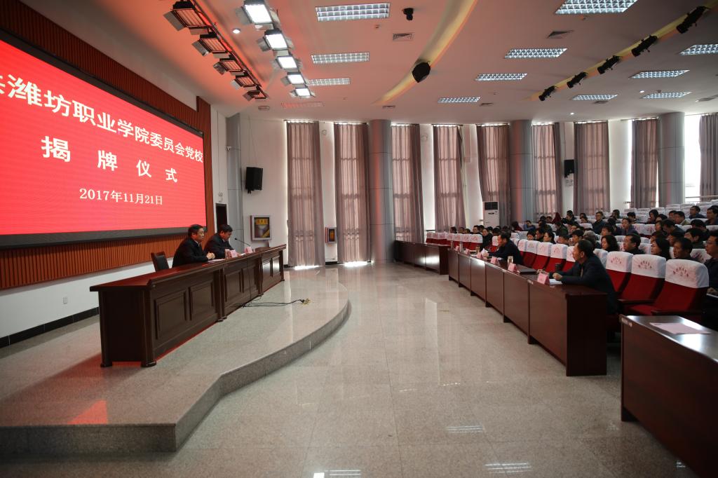 11月21日,中共bv伟德国际1946委员会党校揭牌仪式在滨海校区举行。学院党委书记、党校校长张洪全出席并为党校揭牌,党委副书记、院长王家爱主持揭牌仪式。