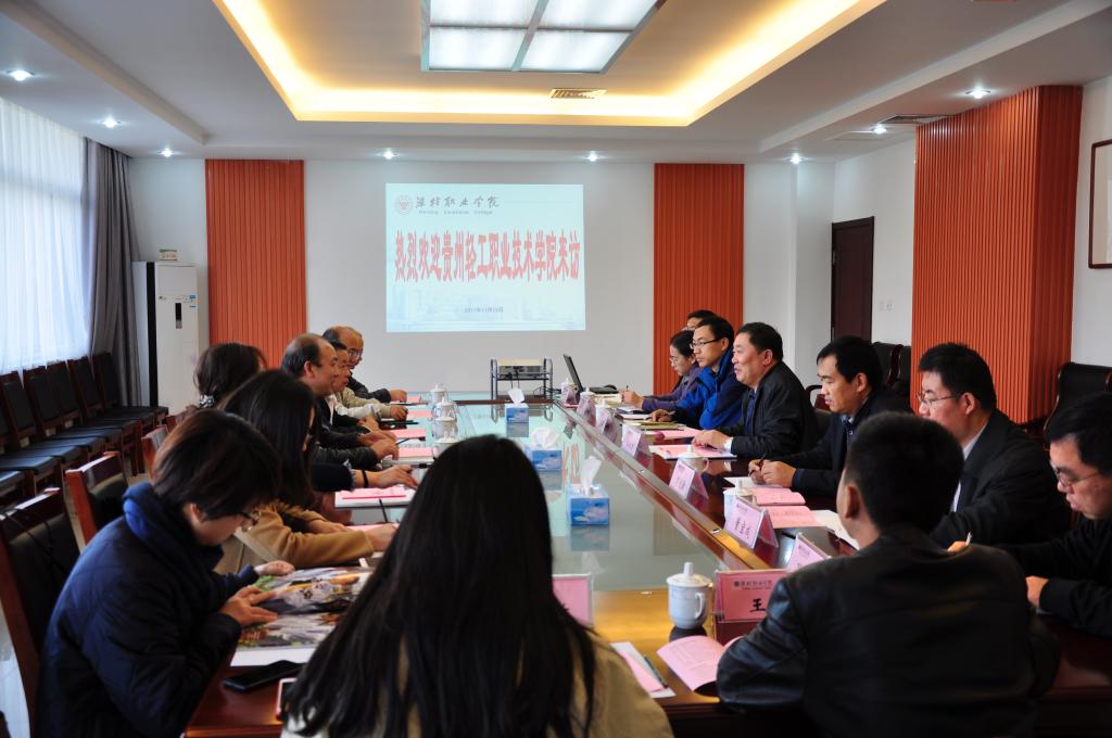 11月13日下午,贵州轻工职业技术学院副院长刘天德一行9人来bv伟德考察交流。学院党委副书记宋桂言在会议室会见客人。组织人事处、学生工作处、基建处、安全保卫处、食品药品学院、化学工程学院相关负责同志参加座谈。