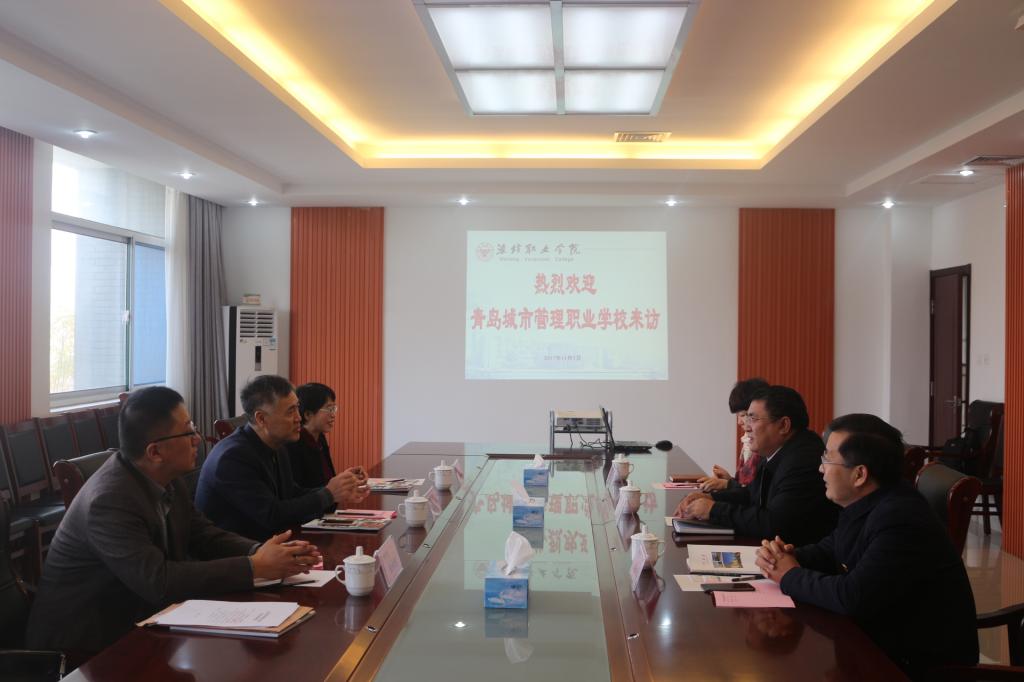 11月7日上午,青岛城市管理职业学校校长赵芳亮,副校长杨淑英一行3人来bv伟德就合作办学相关事宜进行考察交流。院长王家爱在会议室接见客人。教务处、招生就业处负责同志参加座谈。