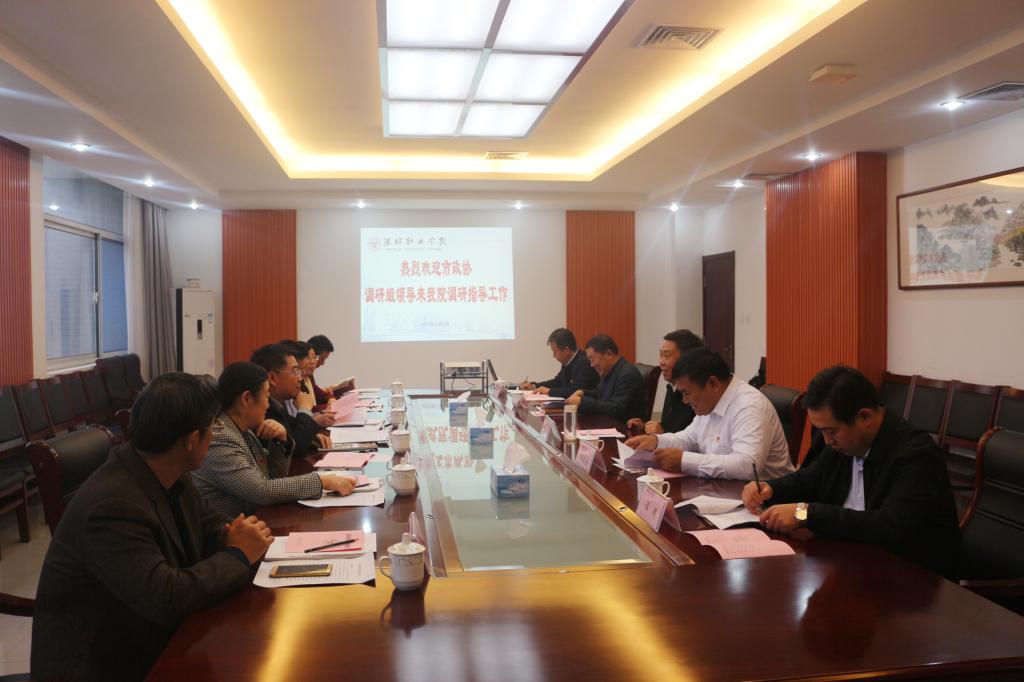 11月1日下午,潍坊市人力资源管理服务中心主任魏明带领潍坊市政协专项调研组一行6人来bv伟德,就“潍坊市职业教育发展现状和学院在推进‘四个城市’建设中发挥作用情况”进行调研。学院党委书记张洪全,院长王家爱,党委副书记宋桂言,纪委书记郭晓辉,党委委员、办公室主任谭明,组织人事处主要负责同志陪同调研。