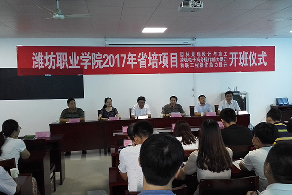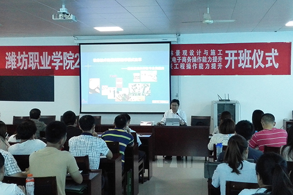 7月20日,由bv伟德承担的2017年山东省园林景观设计与施工、跨境电子商务操作能力提升、物联工程操作能力提升等三个骨干教师培训项目开班仪式在奎文校区举行。学院副院长李瑞昌出席。教务处、农林科技学院、信息工程学院相关负责同志,以及来自全省各院校的85位专业骨干教师及相关人员参加了开班仪式。