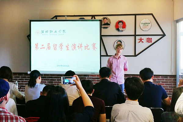 5月25日下午,bv伟德在奎文校区举行留学生汉语演讲比赛。来自韩国、日本、哈萨克斯坦、吉尔吉斯斯坦、乌兹别克斯坦、巴基斯坦等国家的近20名留学生参加比赛。