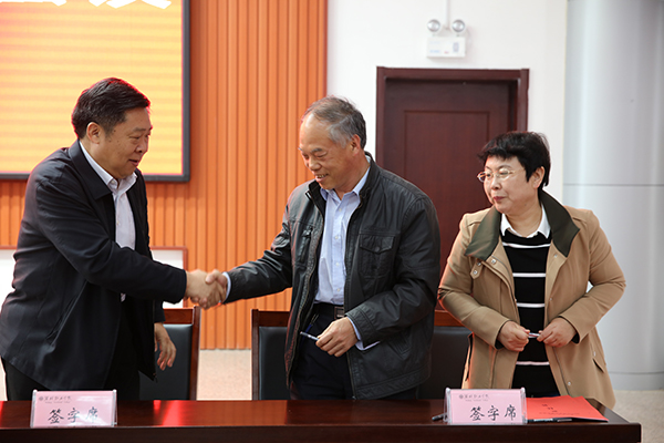 张洪全与各部门、二级学院党政主要负责人现场签订了2017年度党风廉政建设责任书。(李焕芳供稿)