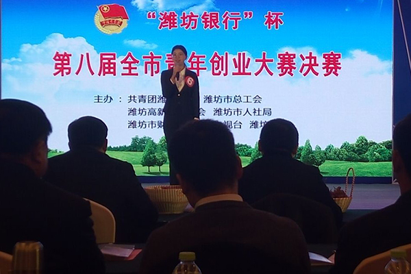“潍坊银行”杯第八届全市青年创业大赛决赛11月25日举行。bv伟德化学工程学院曹流香同学获大赛三等奖,并获潍坊市青年创业扶持金1万元奖励。