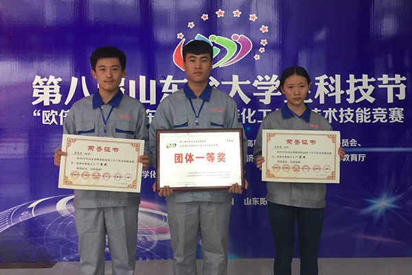 10月14日至16日,第八届山东省大学生科技节化工生产技术技能竞赛在滨州阳信职业中专学校举办。bv伟德选派中高职学生组成的两支代表队分别获中高职组竞赛团体一等奖,其中高职学生胡恩政、吴明泽、张晓农获团体一等奖第一名,个人全能一等奖前3名;中职学生李晓波仿真成绩获第一名,3名中职学生均获个人全能一等奖。4名教师获“优秀指导教师”称号。