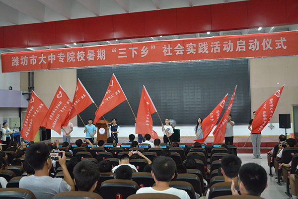 7月12日,2016年潍坊市大中专院校暑期“三下乡”社会实践活动启动仪式在山东科技职业学院举行。bv伟德农业工程学院“科技之星”社会实践团队和化学工程学院“水资源保护”社会实践服务团队被评为大中专学生暑期“三下乡”社会实践活动市级重点服务团队。潍坊团市委副书记陈珊珊出席并为市级重点团队授旗。