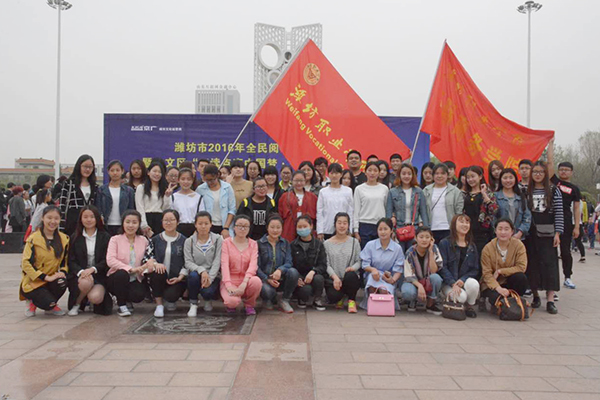 4月23日上午,学院团委与国际商务学院师生参加了风筝广场举行的潍坊市“2016年全民阅读活动启动仪式暨奎文区阅读点亮中国梦·千人诵读”公益活动。