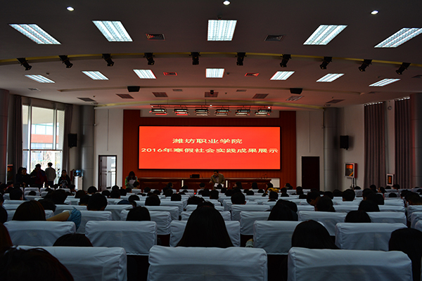 3月31日下午,学院2016年寒假社会实践活动成果汇报交流会在学院滨海校区清泽楼报告厅举行。团委学生工作处相关人员、各二级学院团总支负责同志及各二级学院学生代表共300余人参加了此次活动。