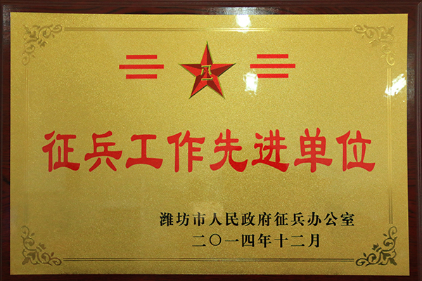 近日,从潍坊市征兵工作办公室获悉,2014年度征兵工作表彰会暨2016年度兵役登记动员会议召开,会议对2014年度征兵工作中成绩突出的单位和个人进行了表彰,bv伟德荣获2014年度潍坊市征兵工作先进单位称号。这是bv伟德自2011年以来第二次获此荣誉。