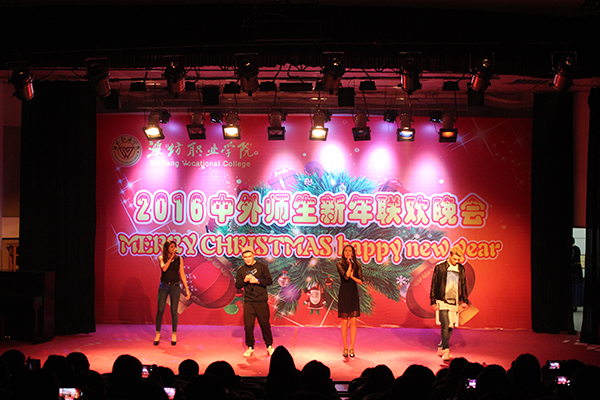 12月23日晚,2016中外师生新年联欢晚会在奎文校区报告厅举行。国际交流与合作处、团委学生工作处、国际商务学院、中专部相关负责同志及中外师生500余人观看了演出。