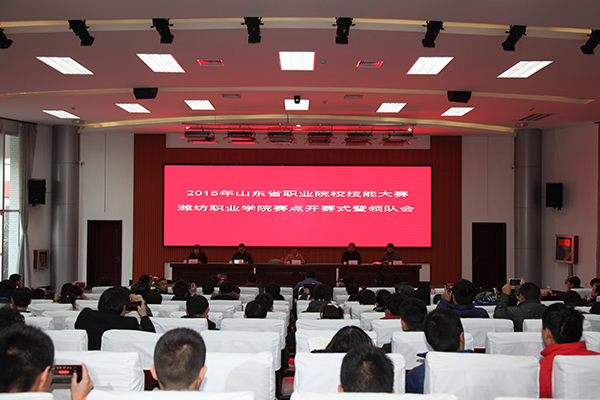 11月26日下午,2015年山东省职业院校技能大赛bv伟德赛点开赛式暨领队会在滨海校区清泽楼报告厅举行。山东省教育科学研究院职业教育研究所主任、赛点监督员范冬梅,赛点裁判长王贤辰,市职教教研室调研员段全续出席。来自全省17地市领队、指导教师、参赛选手202人参加了会议。