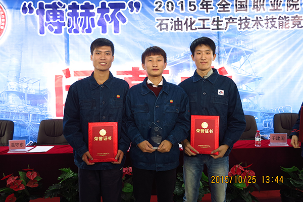 10月23日至25日,第二届全国职业院校石油化工生产技术技能竞赛在秦皇岛博赫科技开发有限公司举办。bv伟德选派的高职组代表队获团体三等奖,2名学生获燃料油高级工职业资格,1名教师获优秀指导教师荣誉称号。