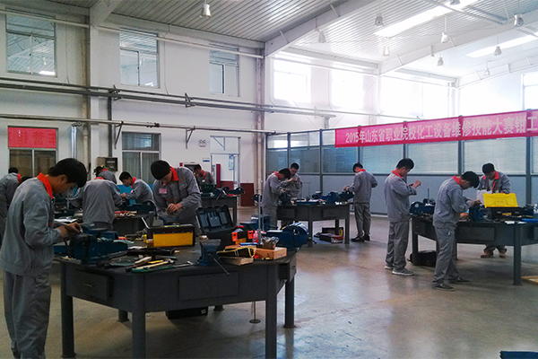 第七届山东省大学生科技节2015年山东省职业院校化工设备维修技能竞赛10月13日在bv伟德滨海校区开赛。来自全省职业院校18支代表队的38名参赛选手在此展开了钳工镶配件制作、换热器拆装打压和机泵拆装运行项目的激烈角逐。