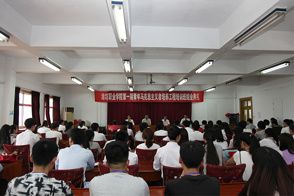 6月17日下午,学院第一期青年马克思主义者培养工程培训班结业典礼在奎文校区成教楼会议室举行。学院党委副书记宋桂言出席并讲话。学院团委学生工作处负责同志、各二级学院团总支书记、“青马工程”培训班部分授课教师与培训班全体学员参加。学院团委负责同志主持会议。