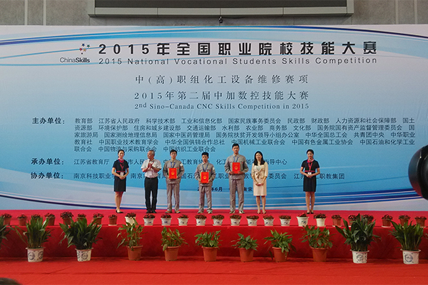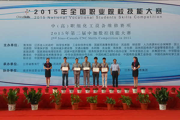 6月9日至12日,由教育部、江苏省人民政府等主办,江苏省教育厅、中国化工教育协会等承办的2015年全国职业院校技能大赛化工设备维修赛项在南京科技职业学院举行。来自全国各省、直辖市、自治区的58所中高职院校的116名选手分别在化工设备维修专业基础、镶配件制作、化工设备检验、机泵拆装运行项目上展开激烈角逐。bv伟德高职组选手朱林森、房锐同学获得团体二等奖,中职组王超、王华华同学获得团体三等奖。朱林森以全国第三名的成绩破格晋升技师资格,成为山东省首个学生身份的化工检修钳工技师。