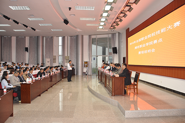 5月11日上午,2015年全国职业院校技能大赛bv伟德赛点赛项说明会在滨海校区清泽楼报告厅举行。国赛赛项顾问杨少光教授、曾祥富教授,赛项专家组组长段玉生教授、陈亚林教授,浙江亚龙教育装备股份有限公司副总经理林紫霞女士出席,来自全国各省、自治区、直辖市参赛单位领队、指导教师133名代表及bv伟德赛点办公室全体人员参加会议。赛点办公室主任、学院副院长贺志强出席并致辞,赛点办公室副主任彭元彪主持会议。