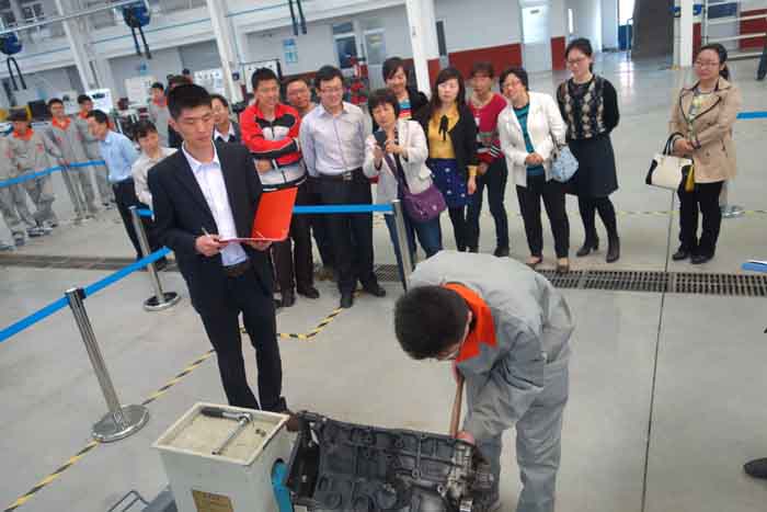 在隆重热烈的气氛中,贺志强宣布“第二届学生职业技能竞赛月”活动正式开始。仪式结束后,学院领导和师生们一同观摩了汽车工程学院“汽车检测与维修项目”技能竞赛项目展示。
