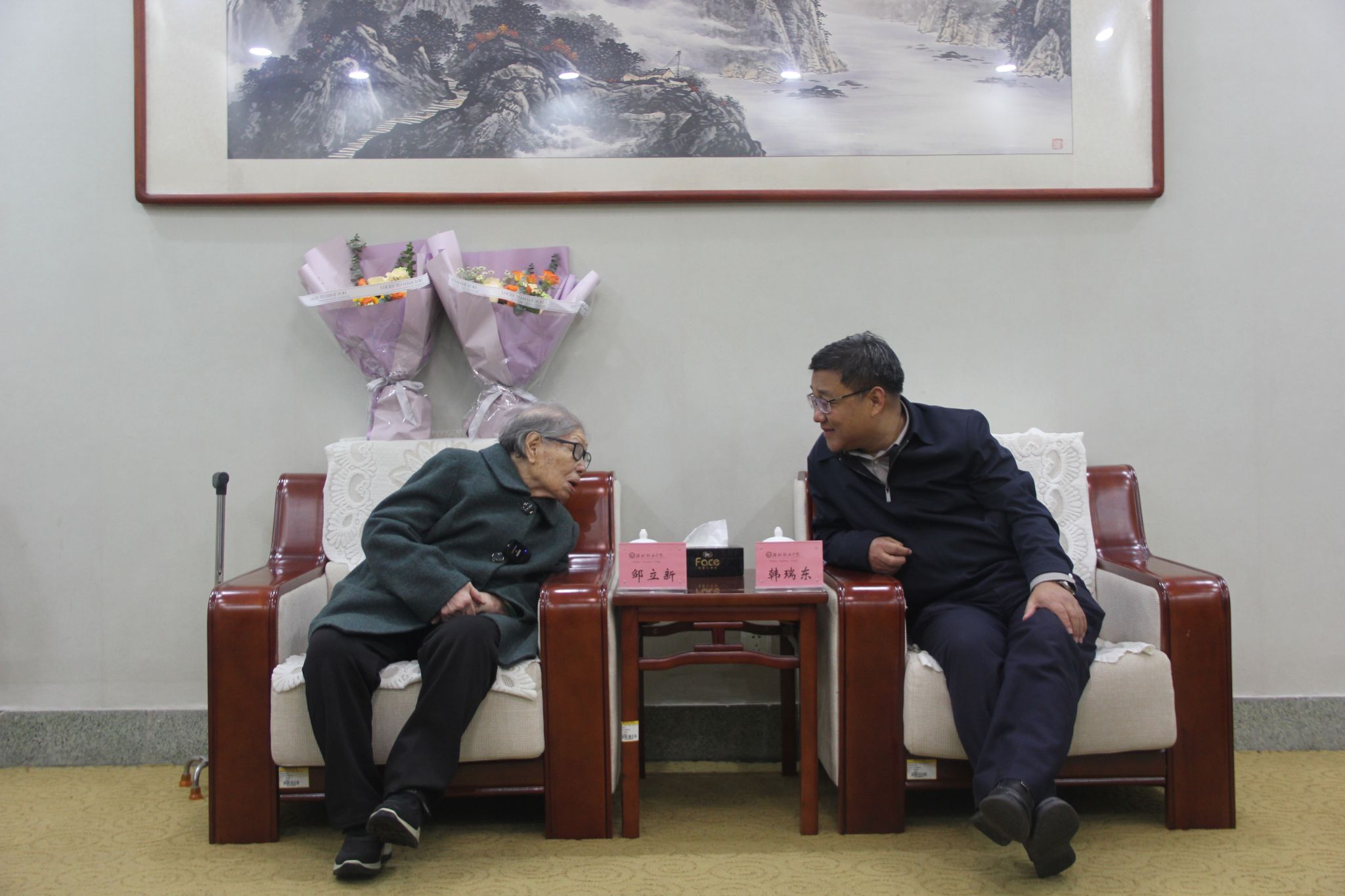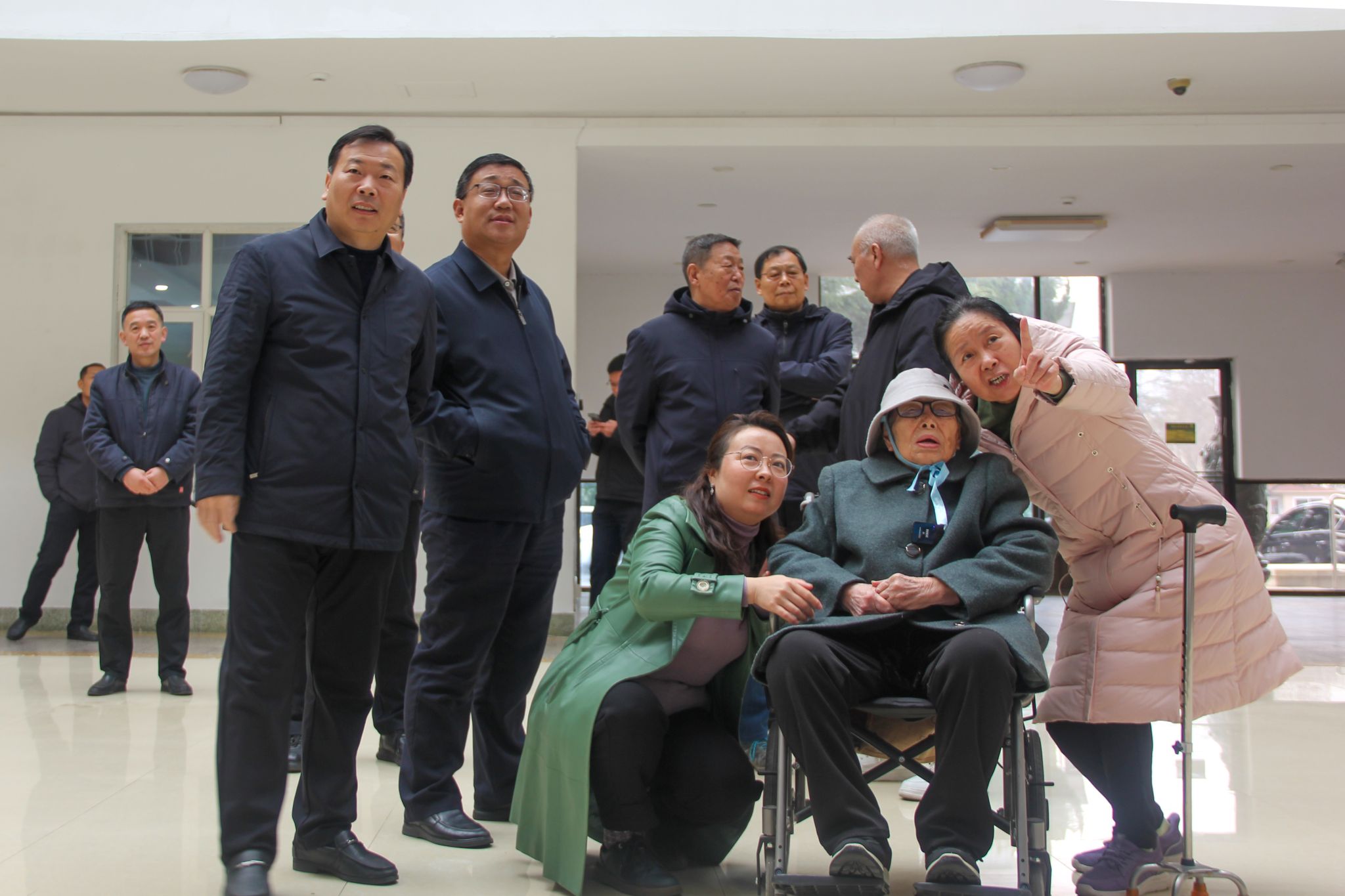 3月11日,春意盎然,学院迎来了一位特殊的客人——百岁离休干部邹立新,学院党委副书记韩瑞东、贺志强,离退休党总支书记刘贞富,党委委员、办公室(统战部)主任(部长)刘志艳,党委委员、组织人事处(离退休工作处)处长于涛,离退休第二党支部书记戴维一,图书馆馆长等与她进行了座谈,并陪同参观了奎文校区校园。