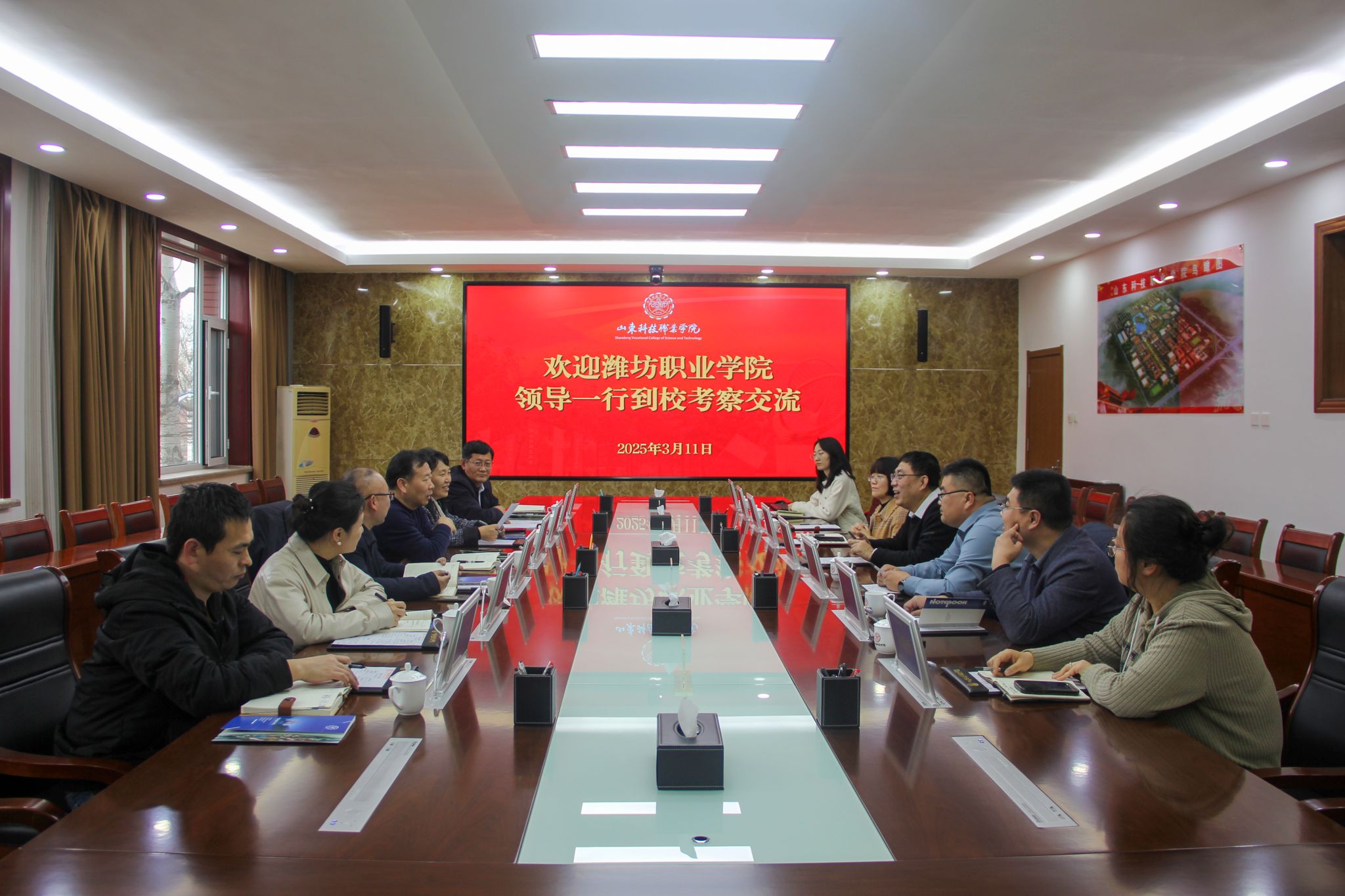 3月11日,学院党委副书记贺志强带领宣传部、双高办、教务处、马克思主义学院等部门相关同志到山东科技职业学院考察交流。山东科技职业学院党委委员、副校长董传民及相关部门负责人参加交流。