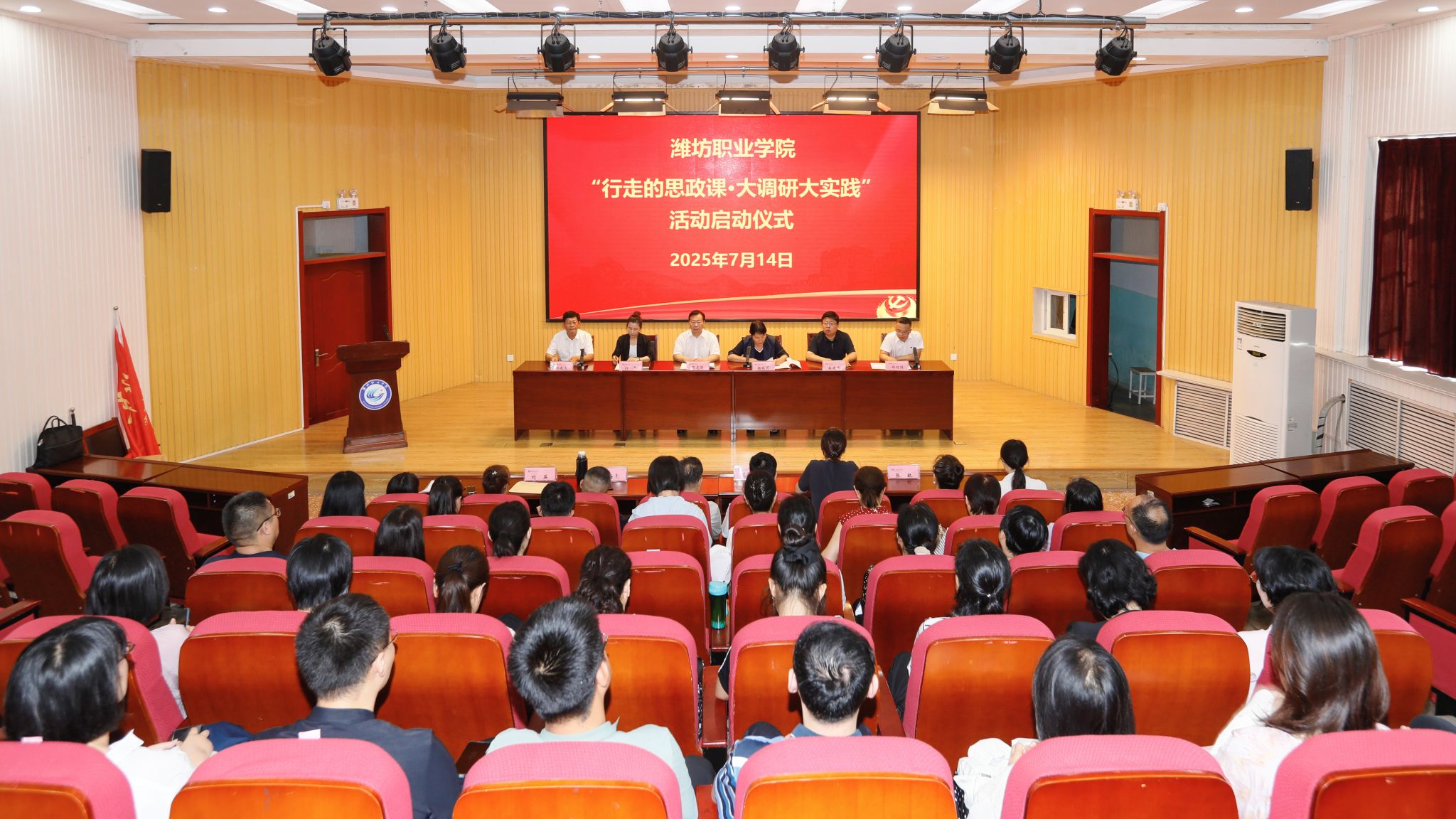 为深入贯彻习近平总书记关于思政课建设重要指示精神,深入挖掘潍坊市大思政课特色资源,推进思政课内涵式发展,学院在2025年暑假组织开展“行走的思政课·大调研大实践”活动。7月14日,活动启动仪式在奎文校区举行。学院党委副书记贺志强,党委委员、宣传部部长鞠桂芹出席启动仪式,教师工作部、团委学生工作处、马克思主义学院负责同志、全体思政课教师和“三下乡”学生代表共50余人参加活动。