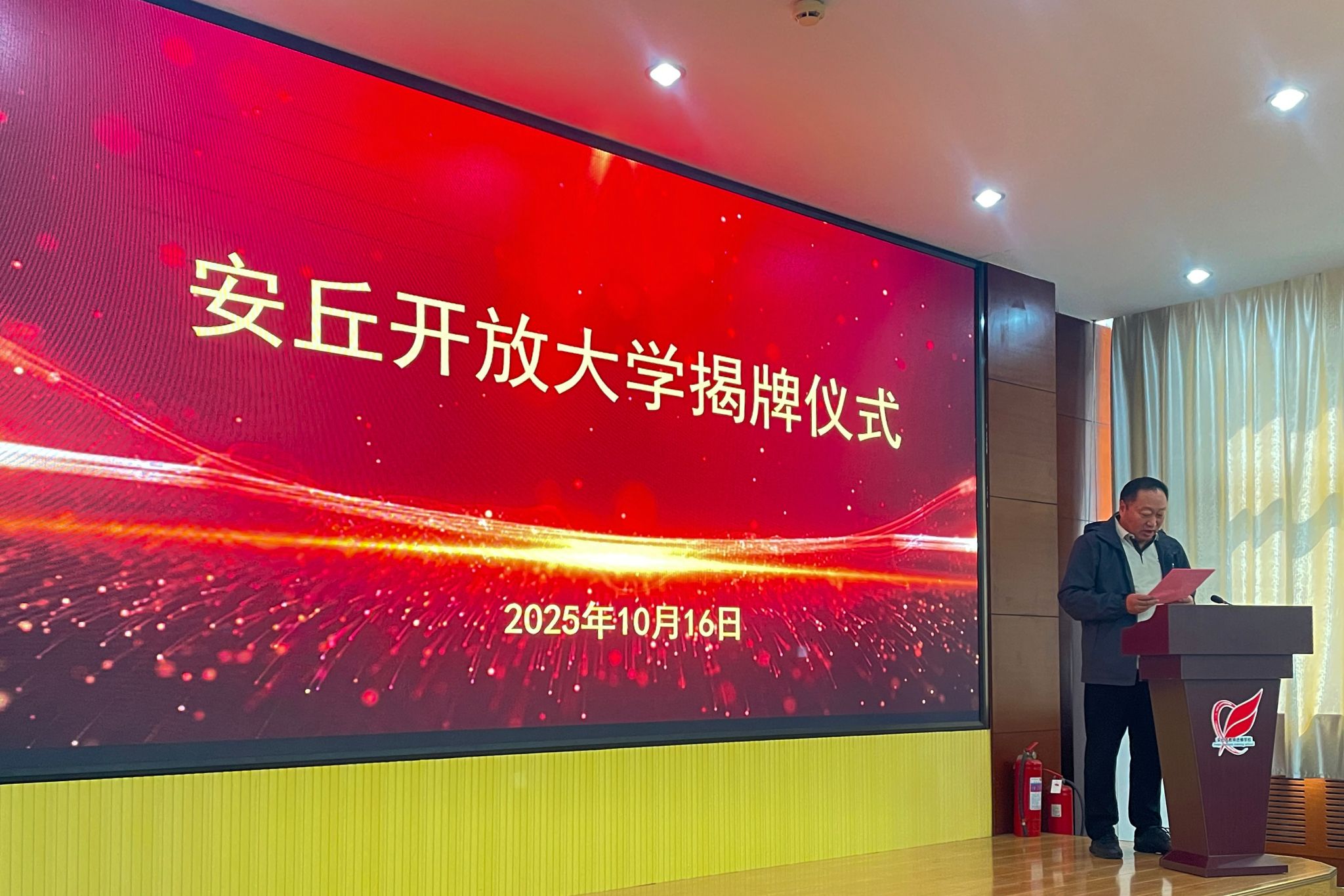 10月16日,安丘开放大学揭牌仪式在安丘市教师进修学校举行。学院党委委员、副院长、潍坊开放大学校长付一明出席仪式并致辞,安丘市相关领导、bv伟德继续教育学院负责同志及各界嘉宾等80余人参加了活动。