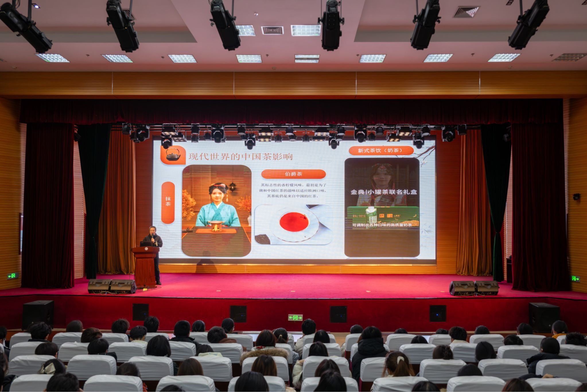 11月27日下午,学院第129场人文与思政讲座在滨海校区图书馆报告厅举行。通识教育中心姚德财老师作了题为“中华传统文化系列——‘茶’那些事”的专题讲座,2025级400余名学生参与。